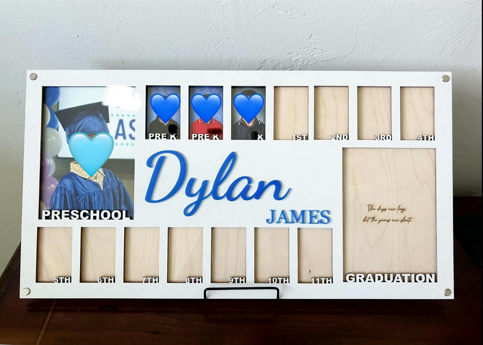 This picture frame showcase your child's journey in life from pre-k to graduation!